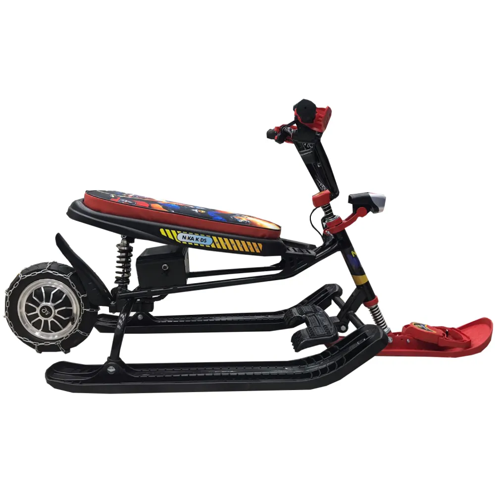 Модель оснащена компактными эргономичными лыжами и 10 дюймовым задним колесом с цепью. При мощности электромотора в 250 Вт способен разогнаться до 15 км/час. Зарядки батареи хватает на 2 часа или дистанцию до 10 км, что зависит от жесткости эксплуатации модели райдерами. Желаете доставить собственному ребенку массу приятных впечатлений, порадовать на праздник или активно провести время с семьей на зимнем отдыхе, предлагаем обратить внимание именно на данный вариант снегоката. Для оформления заказа по лучшей цене и получения бесплатной консультационной поддержки предлагаем связаться с нашим менеджером в оперативном порядке.