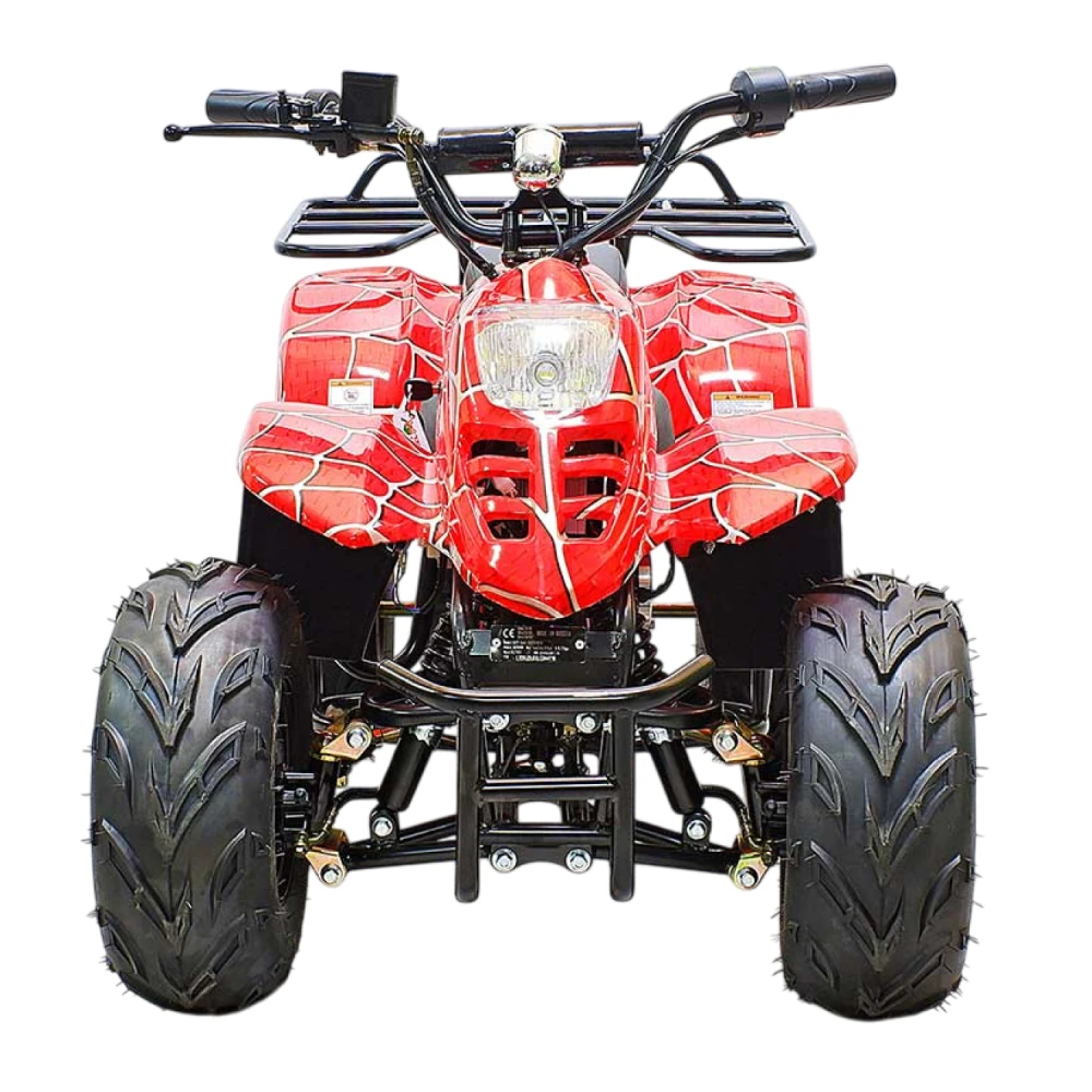 Максимальная мощность двигателя составляет 800 Вт. Характеристики позволяют развивать скорость до 30 км/час. Объемные легко сцепляемые с поверхностью колеса по внешнему виду напоминают вездеходные. Квадроцикл предназначен для езды по городской местности и парковой зоне. Оснащен комфортными мягкими сиденьями, прост в управлении и обслуживании.