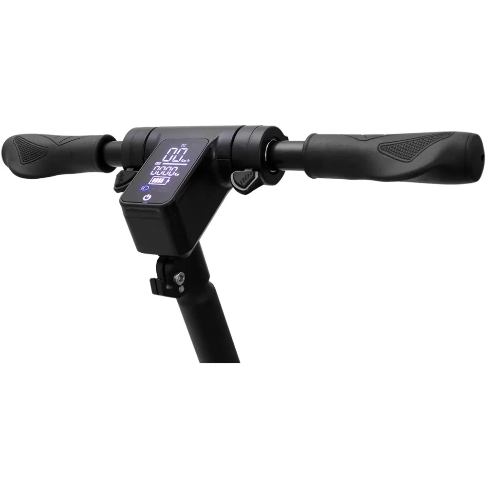 Чтобы ездить, используется электрический движок с мощностью в 450 Вт, который разгоняет самокат до скорости в 20 км/ч. В комплектации поставляется крепкая подножка и переносное зарядное устройство. Аккумулятор девайса средней емкости - 4000 мАч, но и в этом есть свой плюс, так как на его зарядку требуется всего три часа. Выдерживает он поездки на одной зарядке до 15 километров.