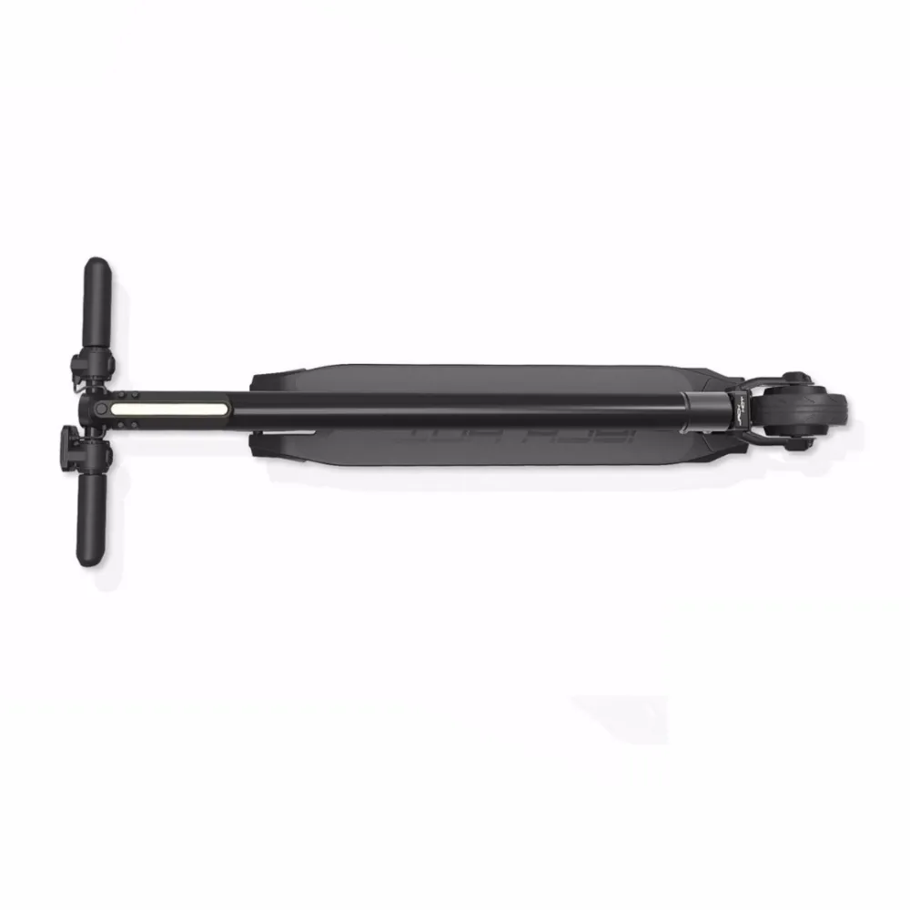 Устройство электросамоката продумано для удобства водителя, платформа с нескользким покрытием придает уверенности в совершаемых маневрах, рулевая стойка оборудована светодиодным фонарем. Информационный дисплей отражает основные показатели транспортного средства. Колеса имеют диаметр 5.5 дюймов.