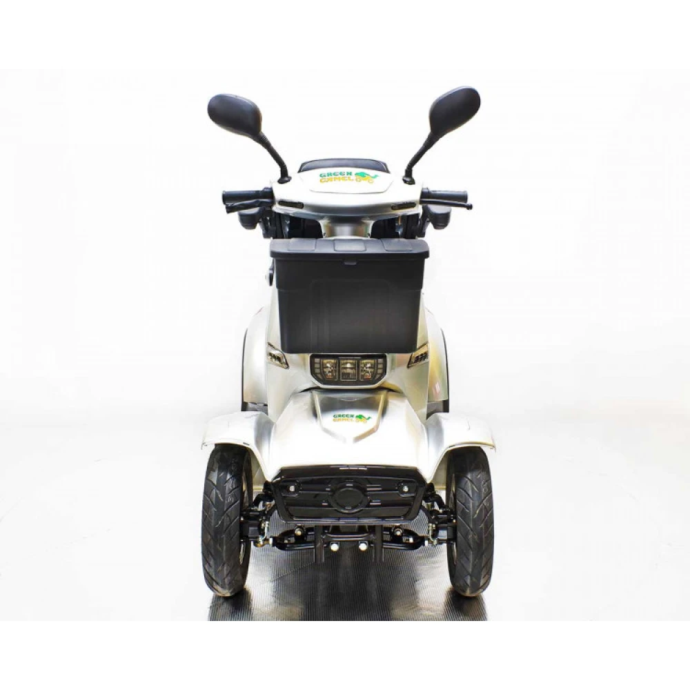 При весе 126 кг выдерживает максимальную грузоподъемность до 150 кг, рассчитанную на пользователей с лишней массой тела. Передняя и задняя кофра – вместительные, высвобождают руки райдера, позволяют перевозить дополнительные грузы, покупки и инструменты. Широкий накатистые колеса и фирменная амортизационная система делают езду плавной, исключает вибрацию. Для заказа тс сейчас, без посредников, предлагаем стать покупателями нашего интернет-магазина.