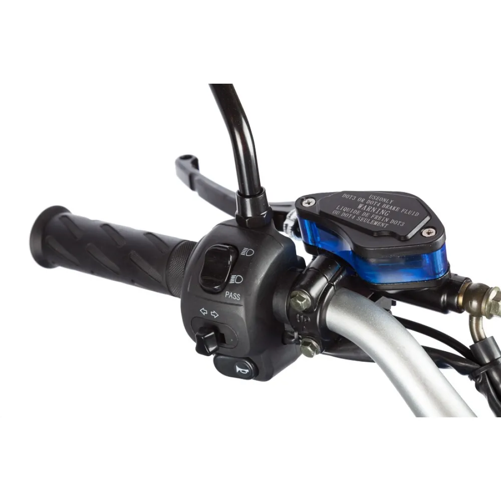 Все три колеса оснащены гидравлическими дисковыми тормозами. Скутер с легкостью проедет по любым улицам, паркам, набережным и дворовым территориям, не создавая помех для движения людям и автомобилям. Модель может проходить по дорогам имеющим наклон до 25 градусов, при этом исключено перевертывание скутера, благодаря его трехколесной оси. Скутер развивает скорость до 45 км/час всего за несколько секунд. Может проехать до 60 км на одном заряде, но благодаря установке второй батареи время катания можно увеличить почти в два раза.